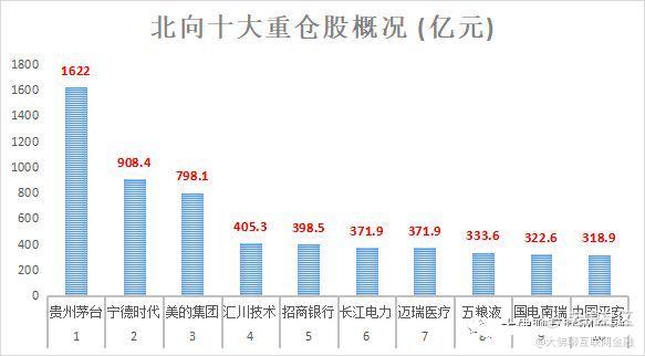 北向资金总持仓市值为2.22万亿元,其中十大重仓股总持仓市值为5864亿元,合计持仓占比26.31%。