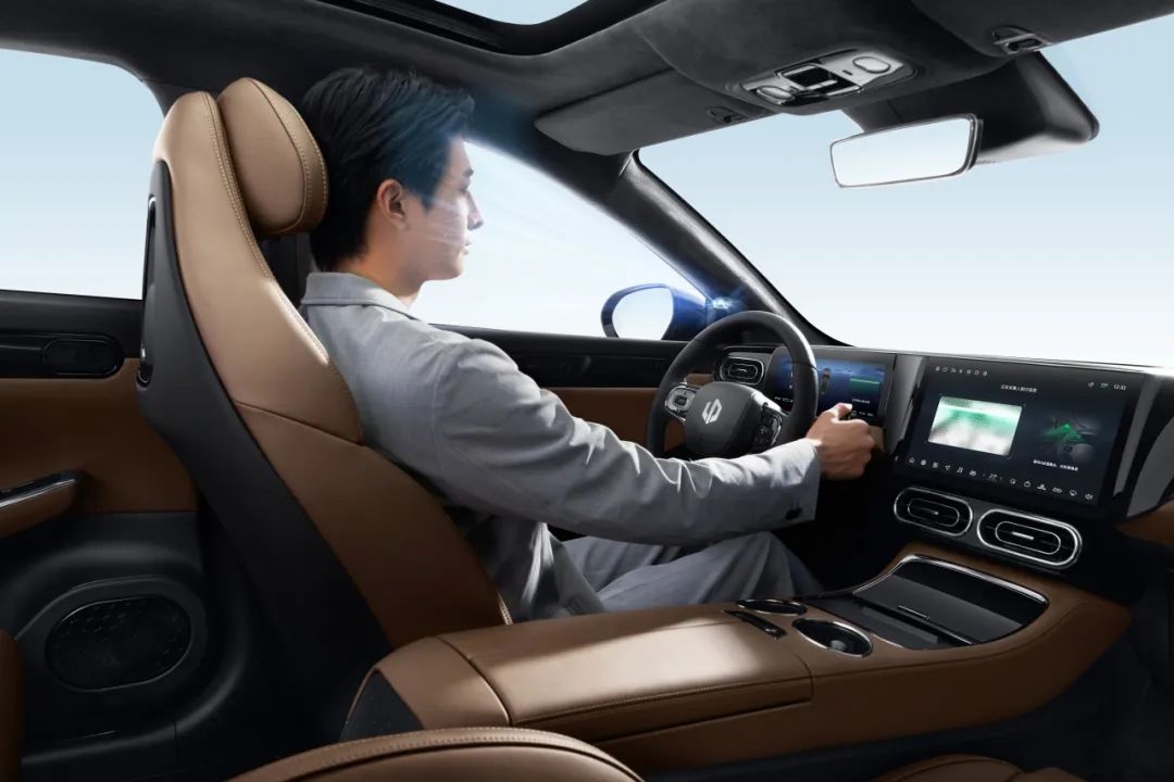 前排双层静音玻璃让座舱更加静谧,座舱体验感更上一个层次;