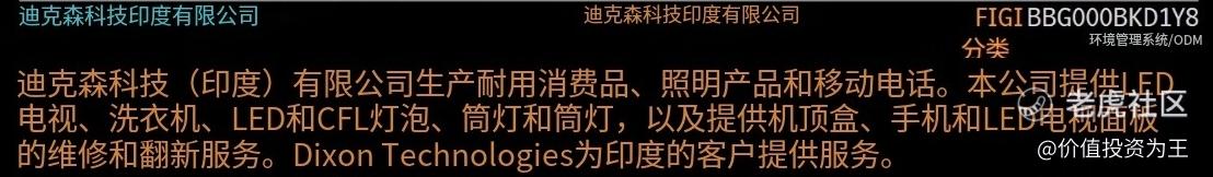 先看迪克森是干啥的?根据彭博显示,其主业是生产电子产品:
