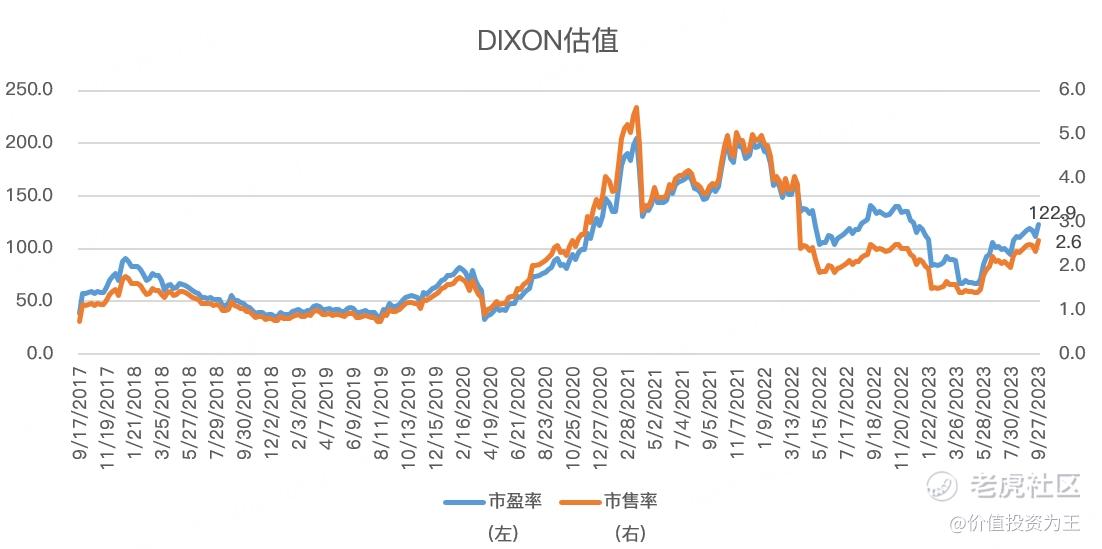 但从估值上看,我尼玛,迪克森市盈率高达123倍,市销率为2.6倍: