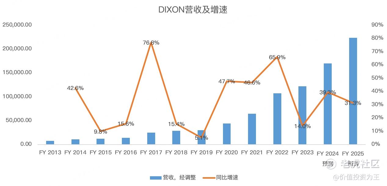 从收入增速来看,迪克森未来两年增速在30%左右,略高于比亚迪电子20%的水平: