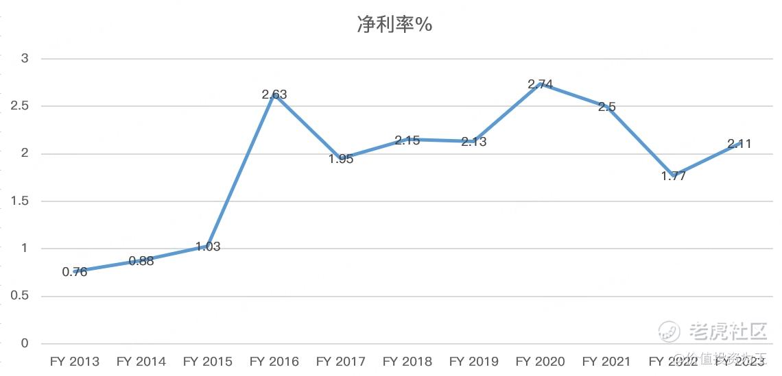 其盈利能力和比亚迪电子一样,净利率特别低,常年只有2%左右: