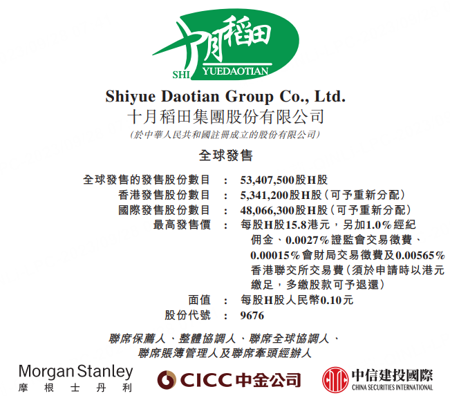 新股招股 | 十月稻田今起招股,预计10月12日上市