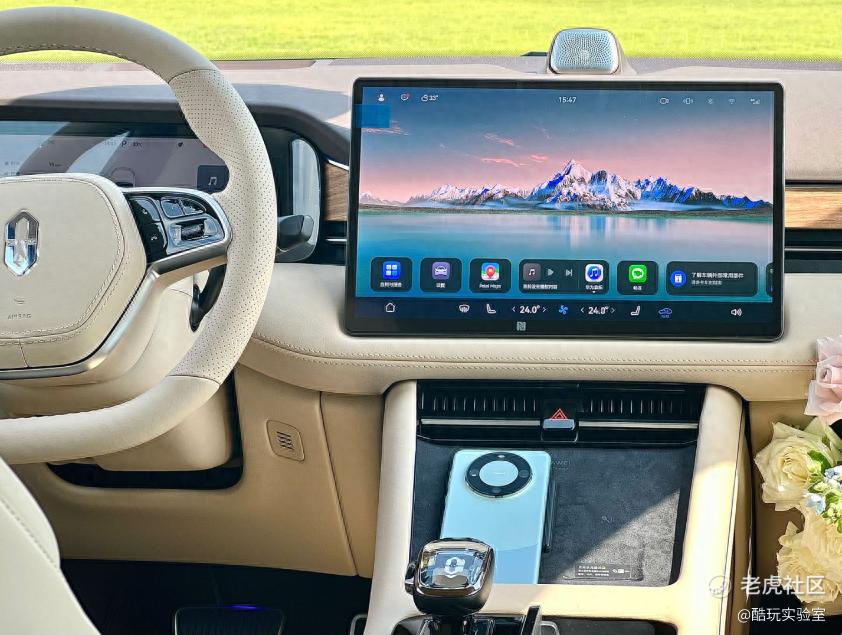 更重要的是,问界新M7后排提供HUAWEI MagLink车载智慧屏系统,可以实现华为平板即挂即连,做到跨平台多设备无感联动,实现了车上办公、创作、娱乐等互动需求。