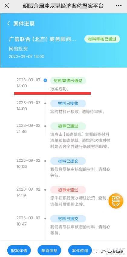 近期有反馈消息称,在线上提交的报案材料,审核已通过。