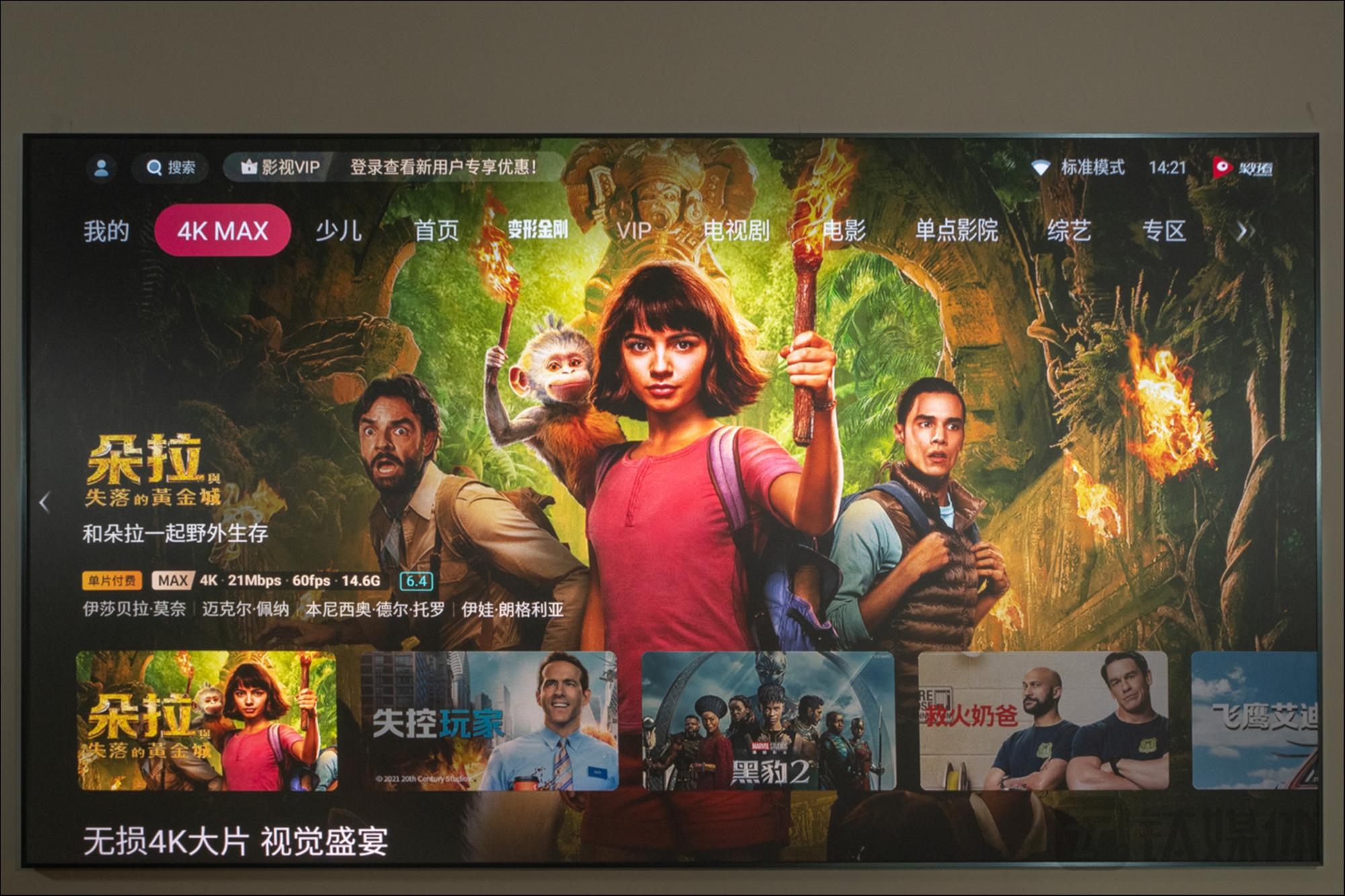 反映到实际的体验中往往就是清晰度不足、复杂颜色场景有色块、画面暗部有噪点等等,海信100L8K激光电视系统中的4K MAX专区就很好地解决了这个问题。