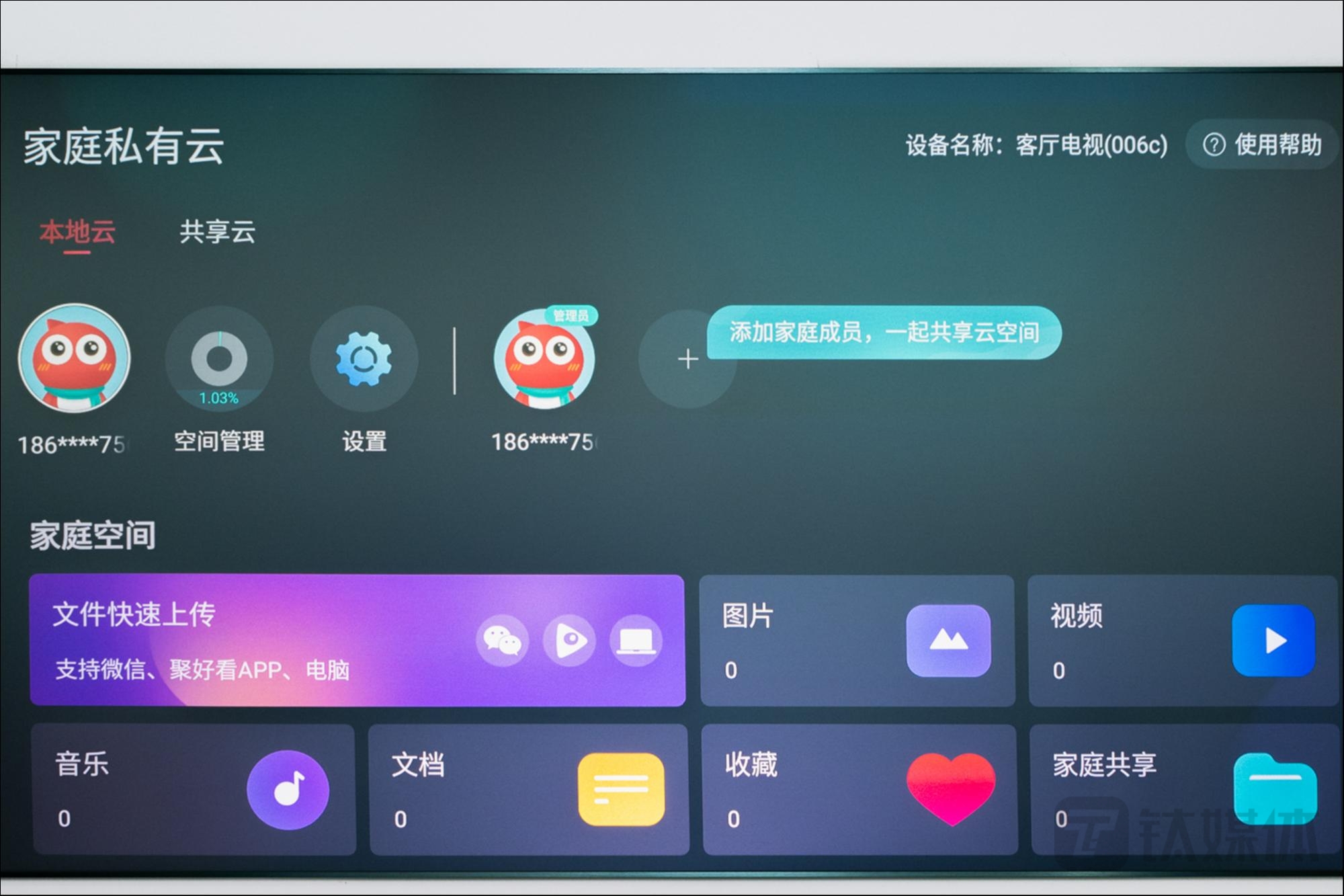 进入家庭私有云界面,不仅可以通过手机等设备直连进行传输,它甚至还打通了百度网盘,可以直接读取网盘里的内容,不得不说这点的考虑非常周到。如果你恰巧是个摄影爱好者,就可以直接在电视系统里看到网盘内的照片、视频等内容。
