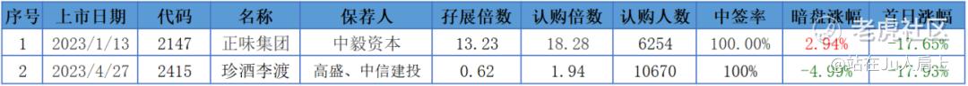 食品饮料行业今年上市了两家公司,珍酒李渡和正味集团,如图所示,都是大幅破发。
