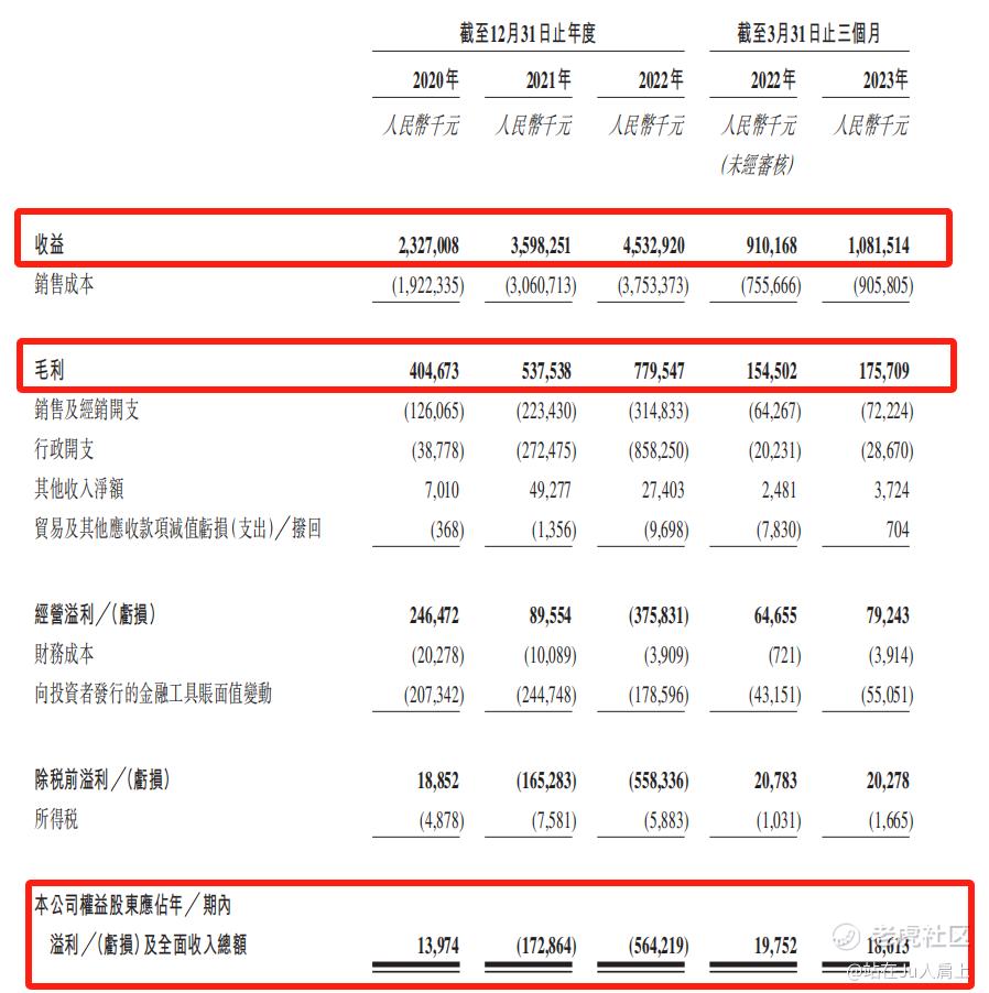 2020~2022年度公司毛利分别为4.04亿、5.38亿、7.8亿,23年第一季度公司毛利为1.76亿人民币;