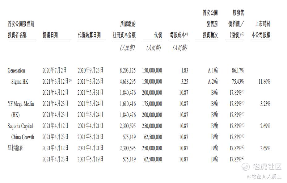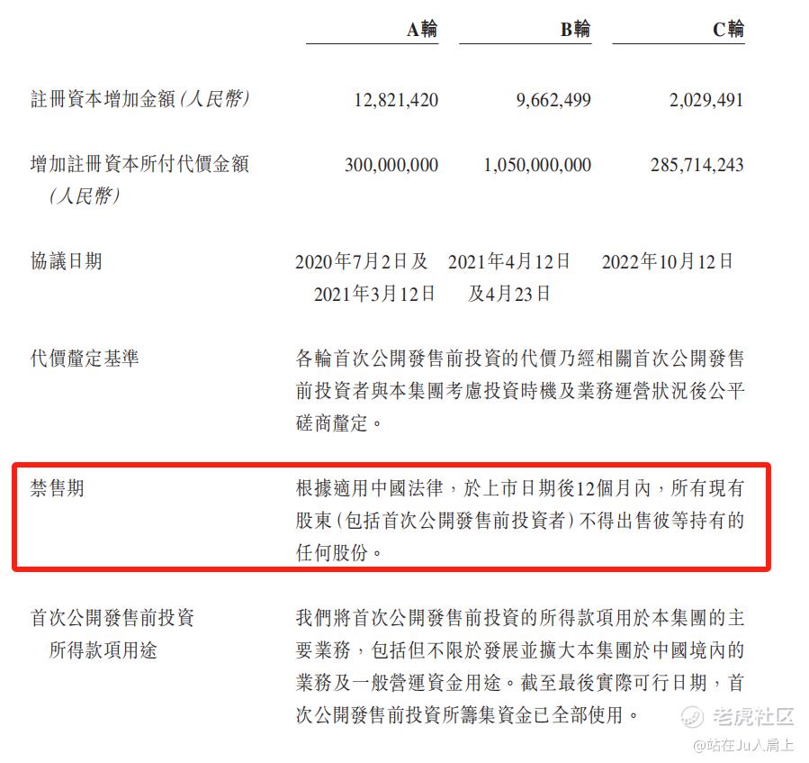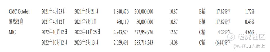 公司2020年7月至2022年10月经历了3轮融资,吸引的投资机构包括启承资本、云锋基金、红杉中国、CMC资本、策然投资以及穆巴达拉投资公司PJSC,彼时发售价较中间价折价86.17~溢价6.44%, 禁售期12个月。