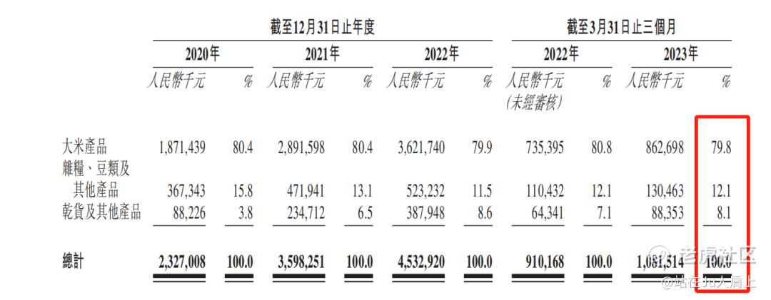 根据弗若斯特沙利文的资料,公司是2022年中国预包装优质大米市场以及预包装杂粮、豆类及籽类市场收入最高的公司;而在中国厨房主食食品收入前五名中,公司是2020至2022年收入复合年增长率最快的企业。