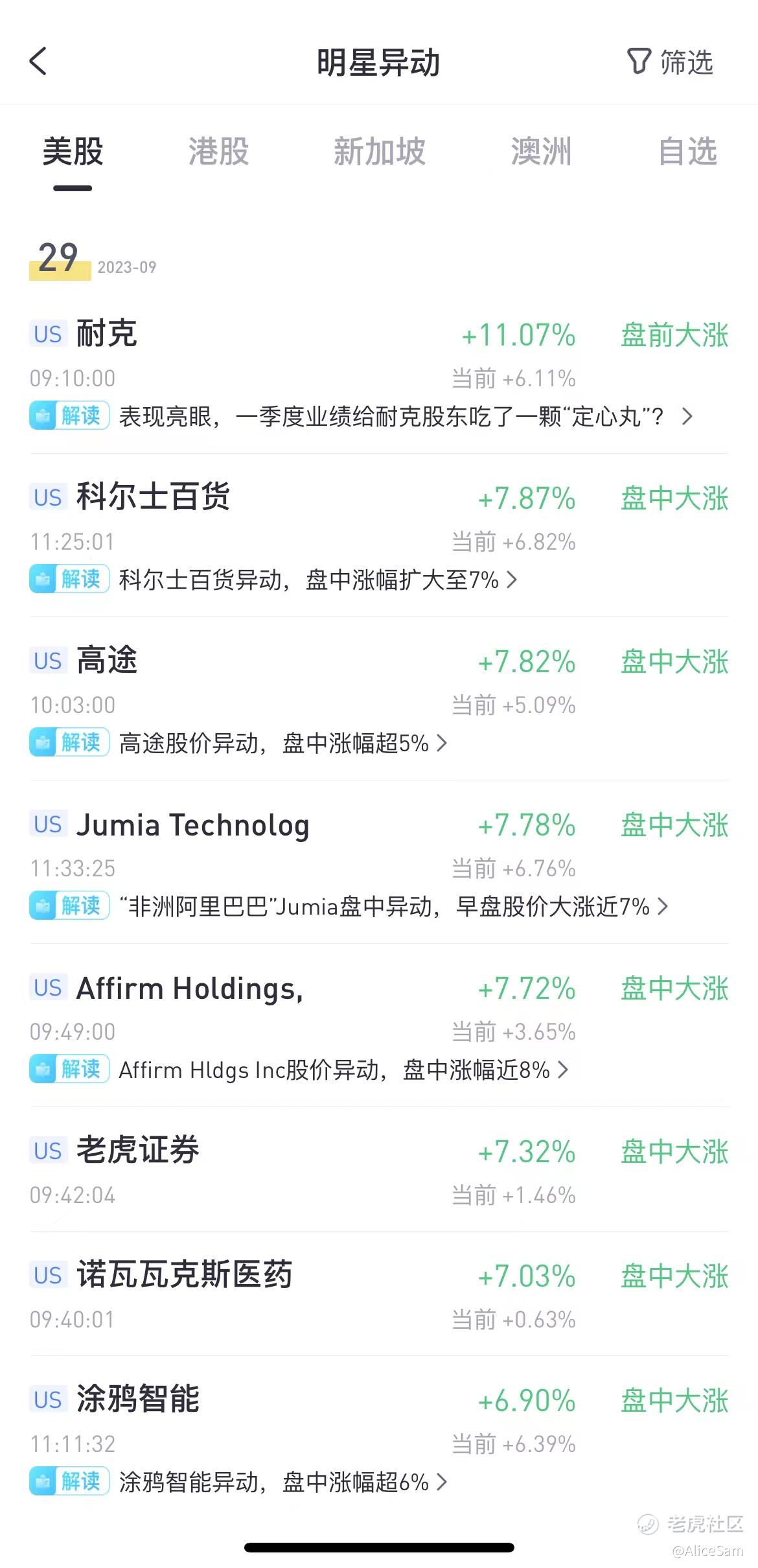 市场对这份财报非常买账,昨晚Nike一度涨到99.47,超过10%的涨幅,提前埋伏买了Call的朋友们,笑眯眯的过节了吧? 我没有提前关注,算了,吃盒榴莲解闷一下啊,哈哈 [财迷]