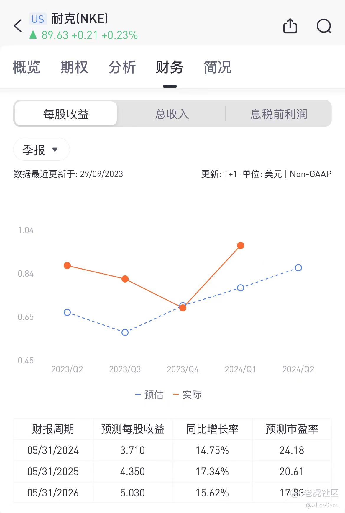 然后看看每股收益,哇哦,这个厉害了,非常高的一个收益值,比预估数据高出了一大截呢。