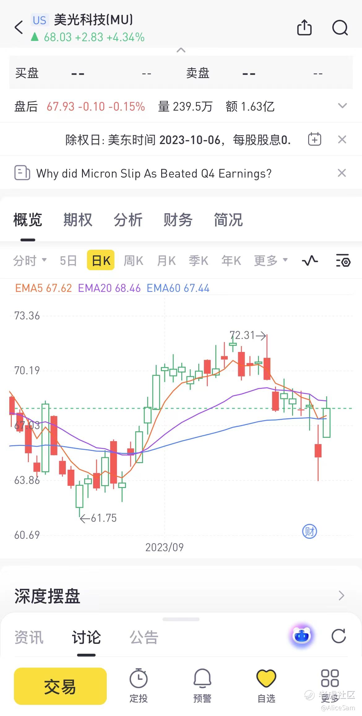 总的来说,美光在2023年Q4面临了财务困境,但他们公司说的是正在采取措施来应对这些挑战。看样子市场不怎么买账啊,财报当天,跌的那么惨一下。