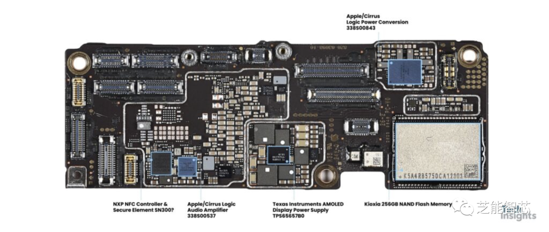 iPhone 15 Pro固定逻辑板上的一些组件: