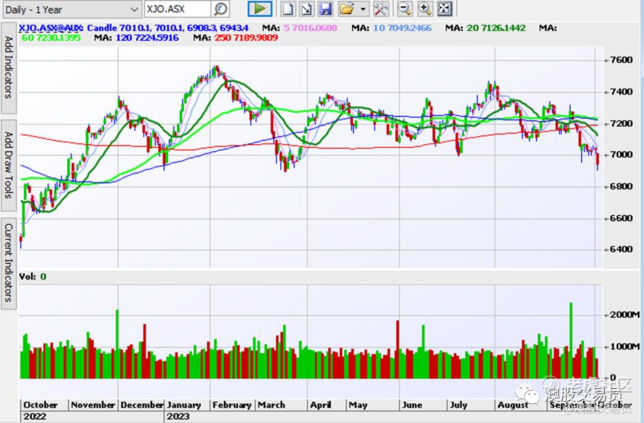 今日ASX 200 指数下跌 -1.28%,至 6943.4 点,以6 个月来最低收盘价。