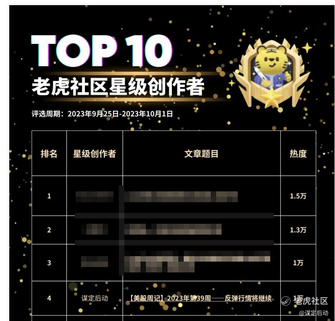 再次获得老虎社区星级创作者TOP10,谢谢大家的捧场[抱拳]