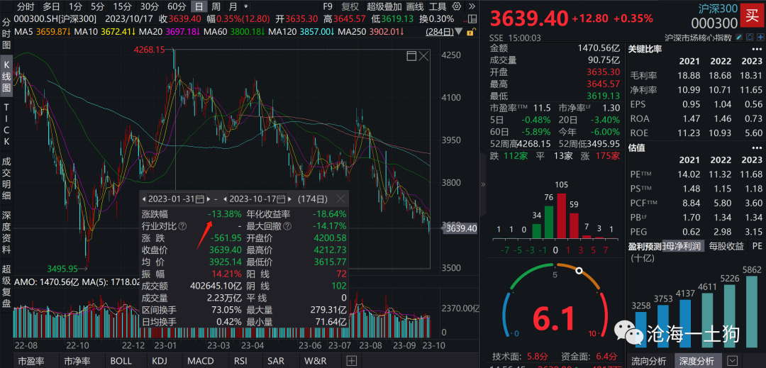 自2023年1月30日以来(ps:今年的高点),沪深300指数累计下跌13.38%,给了股票投资者带来了十分糟糕的体验。
