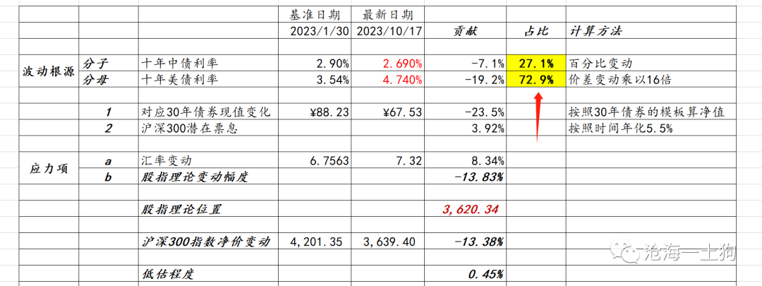 根据我们的沪深300指数定价模型,沪深300指数的理论位置在3620点。其中,国内经济下行能解释27%的股市下跌,海外流动性却能解释73%。