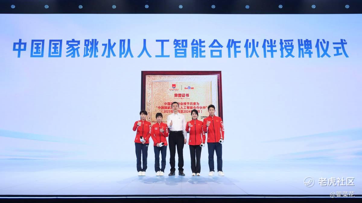 10月17日,在百度世界2023现场,中国游泳协会授予百度“中国国家跳水队人工智能合作伙伴”。