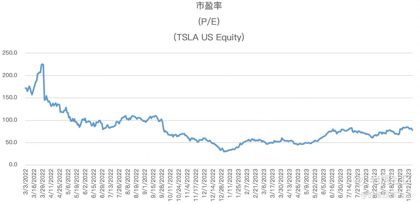当营收和利润增速放缓时,特斯拉最恐怖的是高高在上的估值,目前的市盈率高达77.8倍: