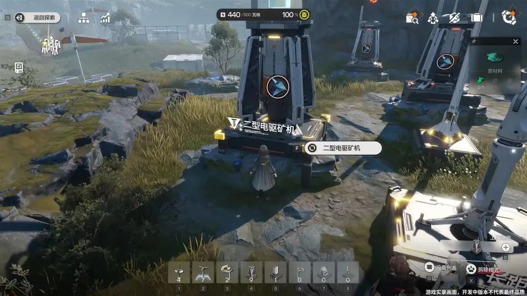 目前来看,每种建筑都具有其独特的功能,如“二型电驱矿机”可以对矿石进行开采和运输,“土壤”似乎可以用来种植和产出农作物资源,“装配站”则可用作养成材料和装备的合成,直接作用于提升角色数值,是角色培养的重要环节。