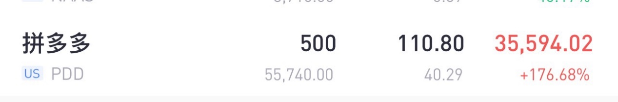 有的,我还有 $阿里巴巴(BABA)$ , $拼多多(PDD)$ , $特斯拉(TSLA)$ 。我关注中概股,拼多多和 $BOSS直聘(BZ)$ 就踩上了幸运球。