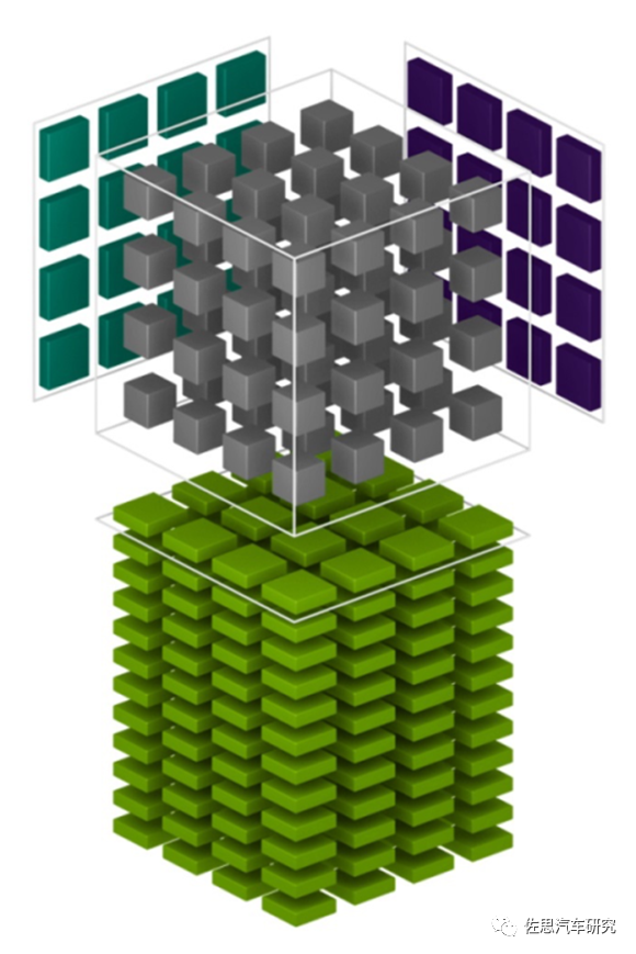 英伟达自Turing架构开始用的张量核架构和华为的CUBE基本一致,都是三维架构。