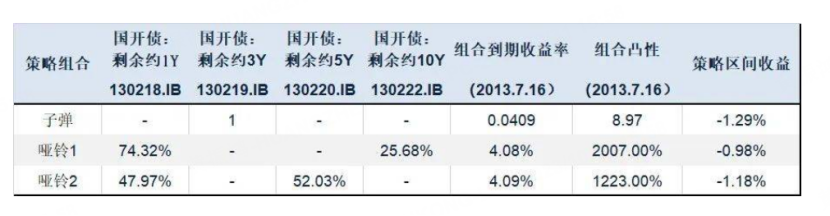 从结果来看,虽然子弹策略和杠铃策略的收益率都大差不大,但是杠铃策略的表现依旧占优,理论上子弹策略在收益率曲线发生陡峭变化时应该表现占优,但由于收益率曲线陡峭趋势不明显,所以也导致子弹策略没能凸显出优势。[Sweats]