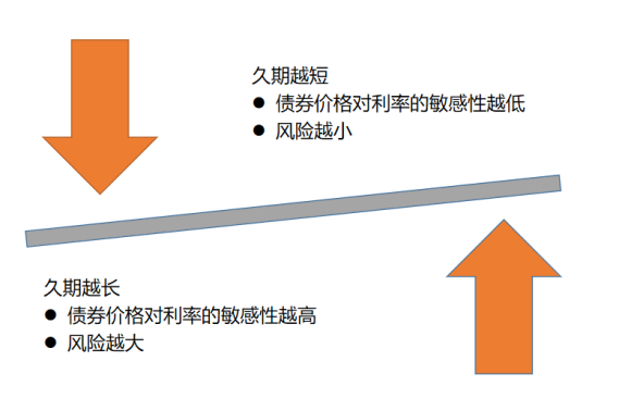 久期主要用来衡量债券价格变动对利率变化的敏感度,简单来讲就是两句话:久期越短,债券价格波动越小,风险越小。久期越长,债券价格波动越大,风险越大。