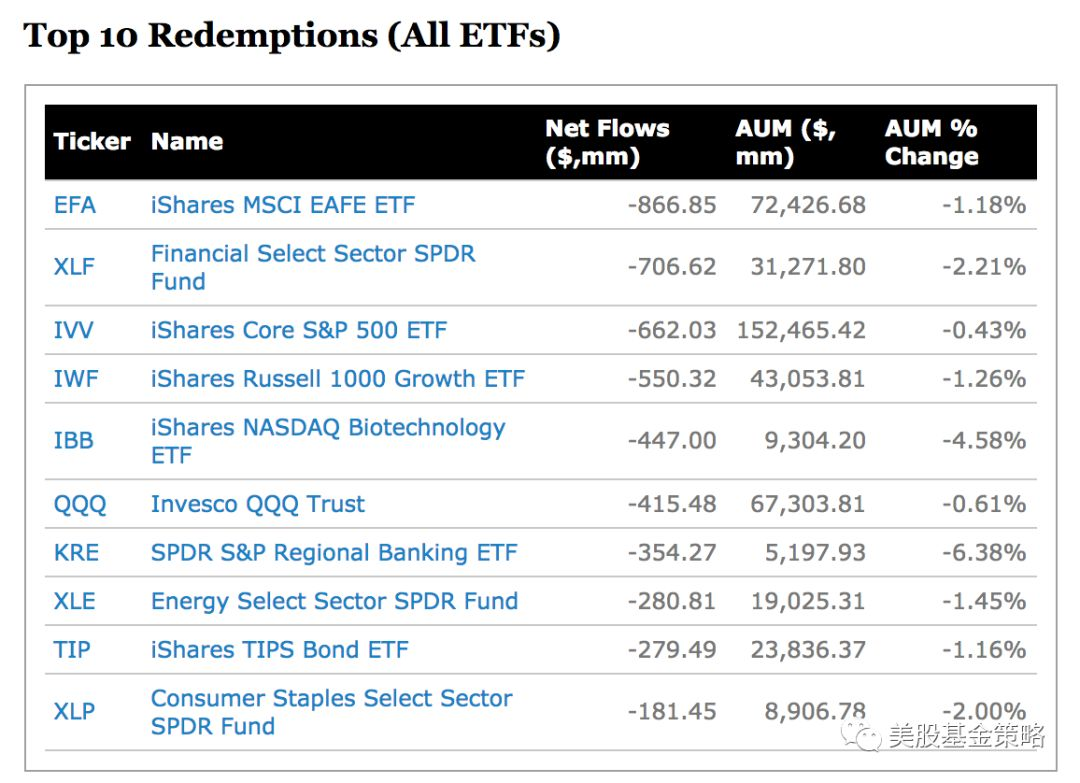 而从资金流出来看,非美发达国家市场基金EFA净流出8.66亿美元,成为损失最大的ETF,今年以来,以欧洲与日本市场为主的此类基金表现也普遍萎靡,但是相对而言比新兴市场还是稳健一些。