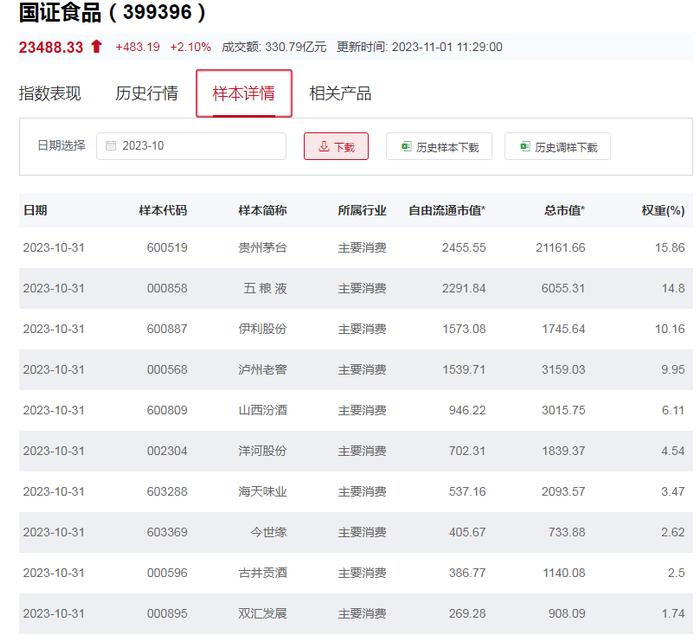 中证主要消费指数重仓股