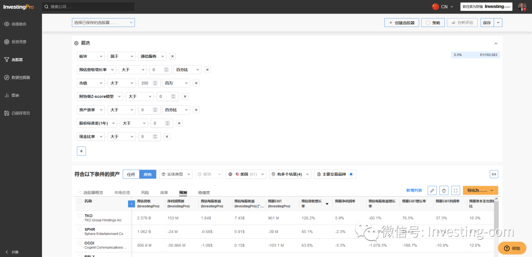 InvestingPro能为您解答这些疑问。InvestingPro选股器,根据最新数据,筛选您钟意的股票。