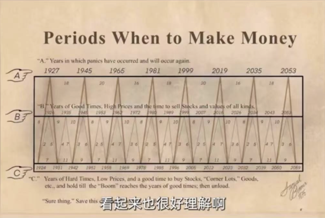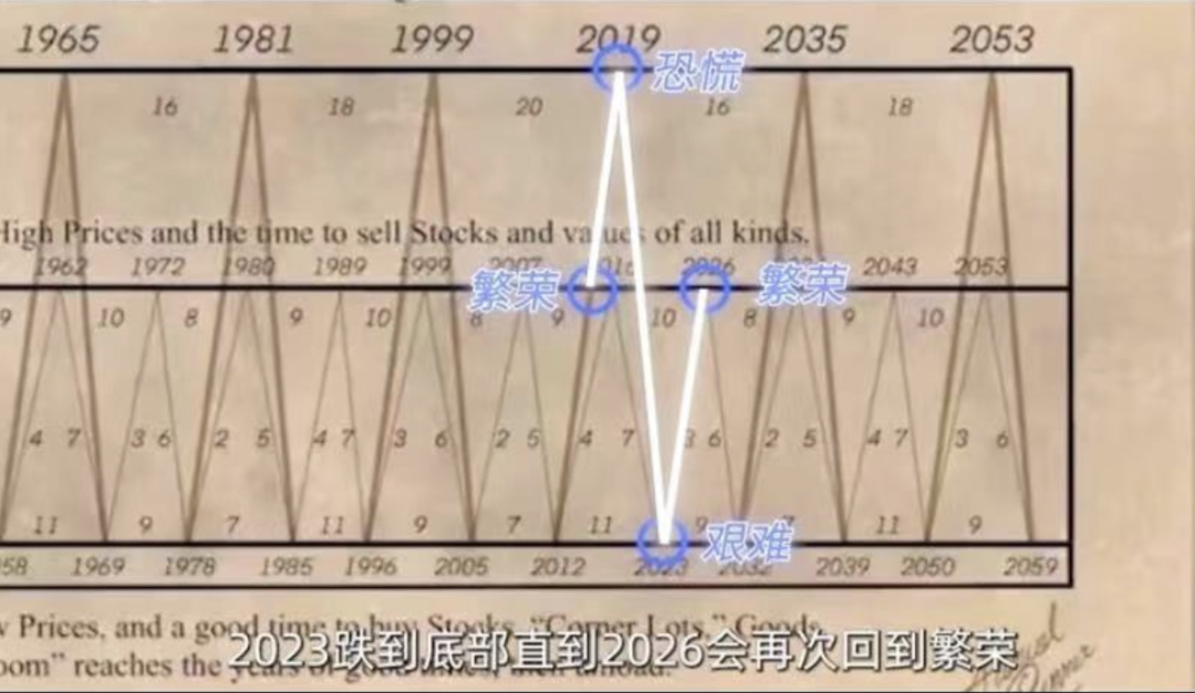 让我们以最近几年为例,根据图表显示,2016年是繁荣期,2019年发生了恐慌,2023年跌至谷底,直到2026年将再次回到繁荣。