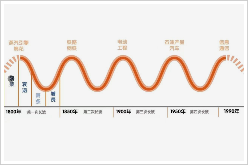 自工业革命以来,我们已经经历了四轮循环,现在刚好处在第五轮的循环里。