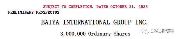 Baiya International Group Inc.(柏雅国际集团有限公司)(下称“工务园”),于2022年11月14日在SEC秘密递表,又于2023年10月31日公开披露招股书,拟纳斯达克上市,股票代码BIYA。