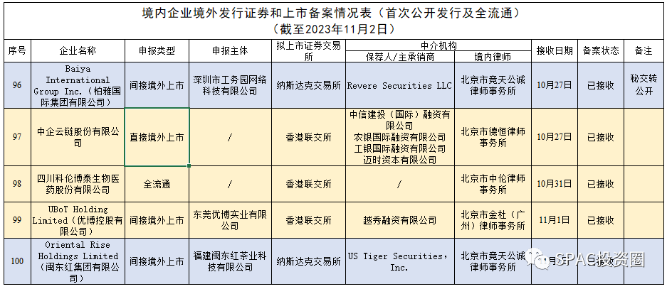 中国证监会:闽东红、中企云链、工务园、优博控股等拟香港/美国上市,在中国证监会备案 (截至20231102)
