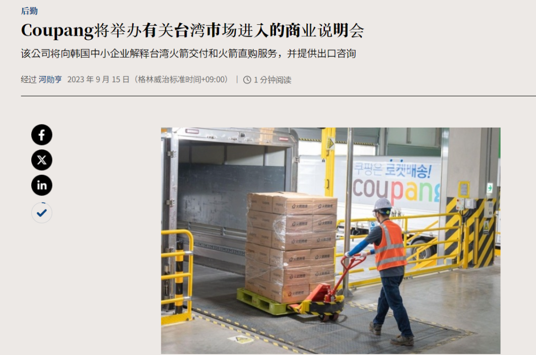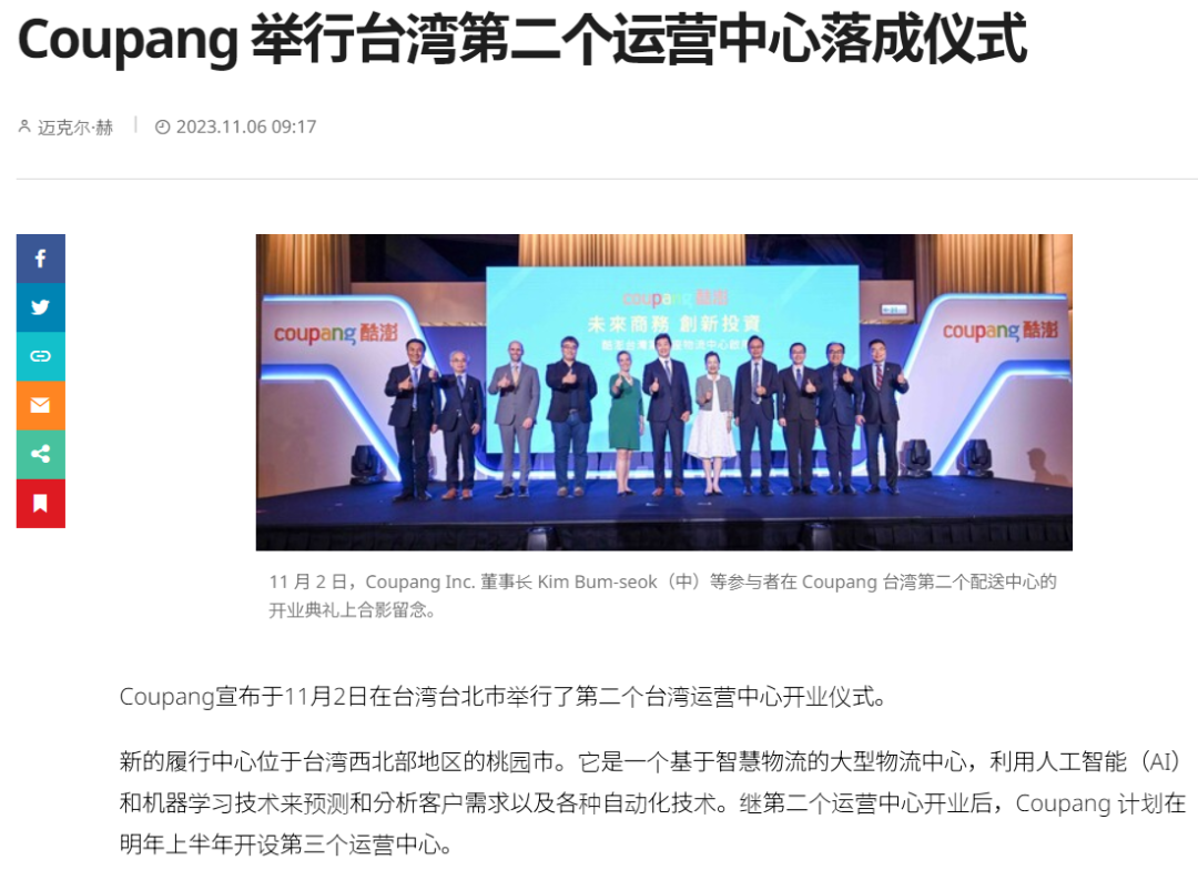 Coupang在台湾开设第二个物流中心 图源:Business Korea