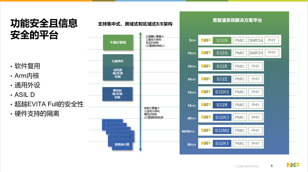 近日,国际主流车用芯片提供商NXP(恩智浦)亮相了一套从90nm到5nm的计算硬件平台体系,且包含可复用的软件体系,具有软件复用和拓展性的一揽子系统级解决方案。