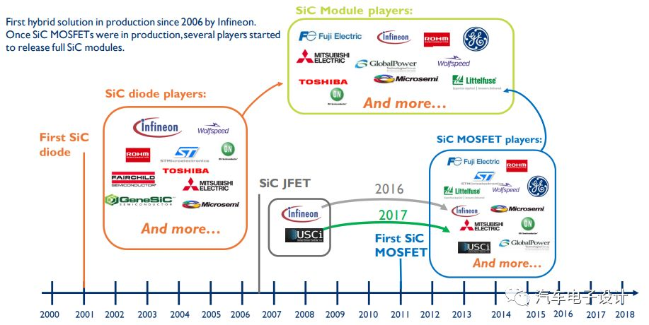 Yole的《Power SiC 2018: Materials, Devices and Applications》报告宣传版里面隐藏了不少信息,但是我们可以看到当前siC的各个开发状态