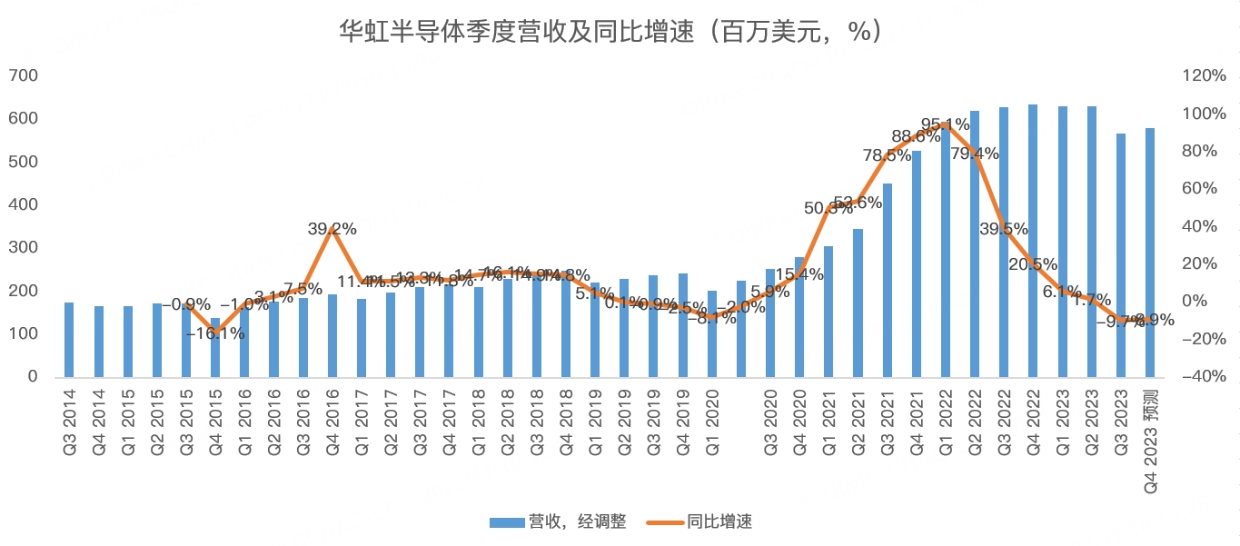 昨日晚间,两家芯片代工厂中芯国际和华虹半导体同时发布了三季报,业绩复苏乏力,其中,华虹半导体三季度营收5.69亿美元,同比下滑9.7%,预计四季度下滑8.9%: