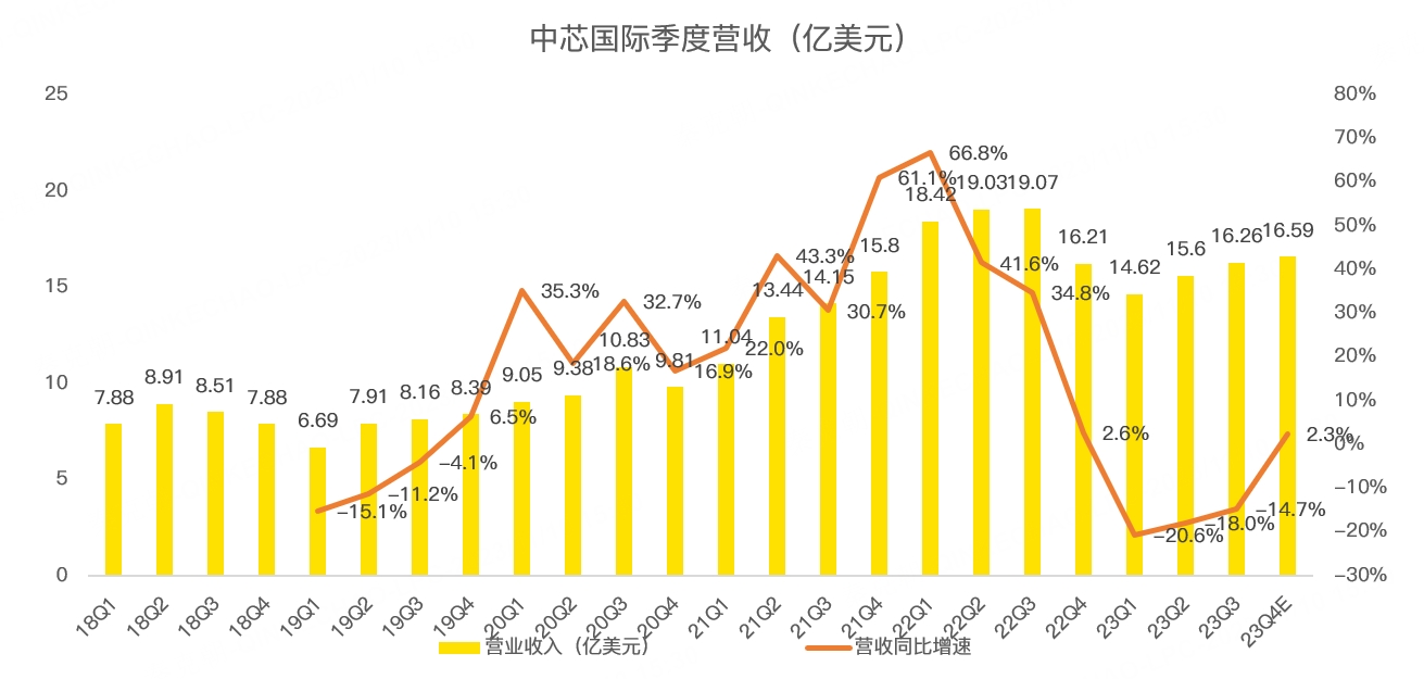 中芯国际的情况好很多,三季度营收16.26亿美元,虽然同比下滑14.7%,但预计四季度营收增速将转正,达到2.3%: