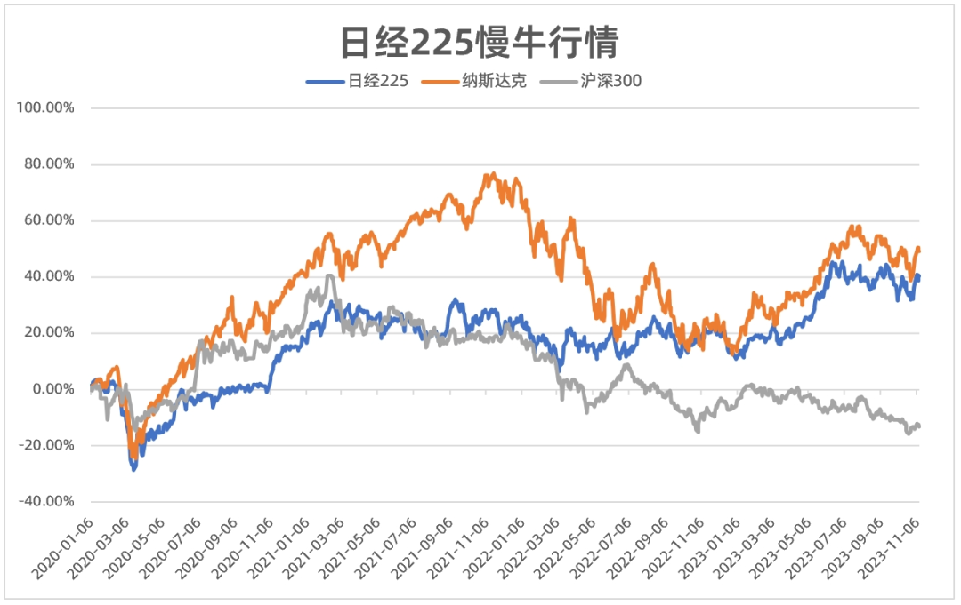 自2020年年初以来,日经225指数上涨了40%,即使是和纳斯达克比起来,那也是可以掰一掰手腕的。