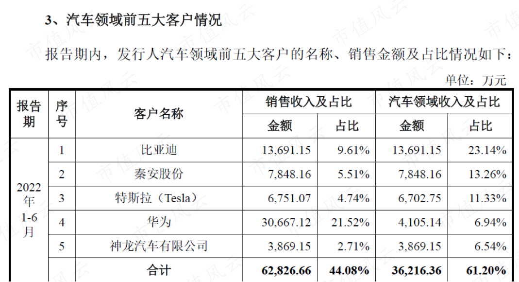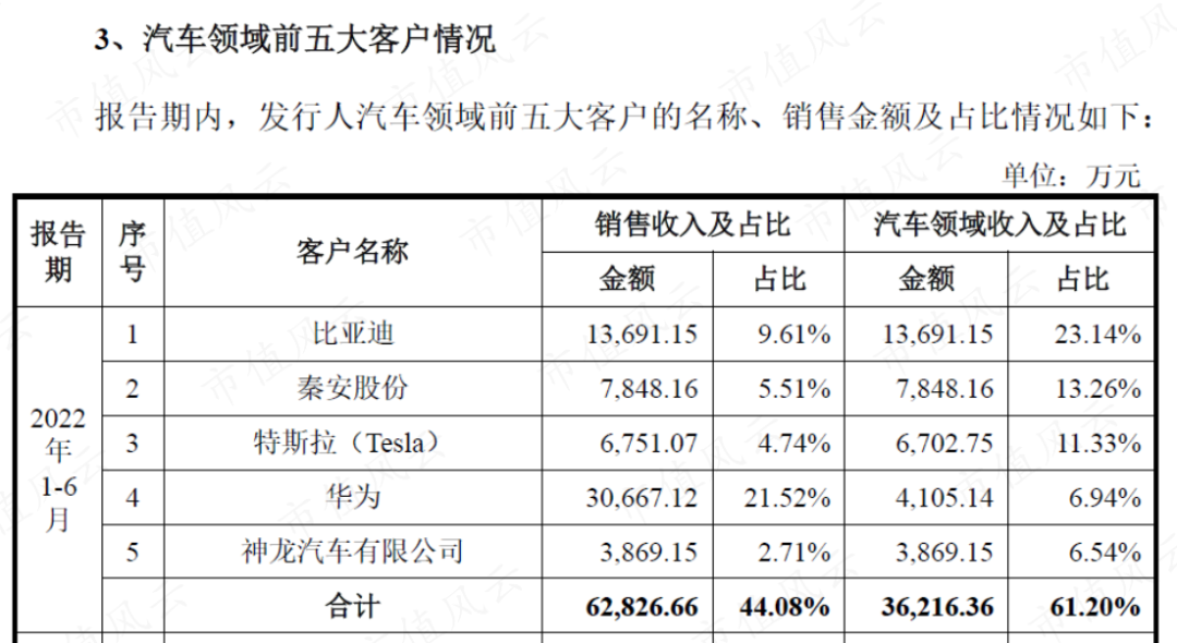 2021年,比亚迪和特斯拉首次成为汽车零部件领域的前五大客户。2022年上半年,比亚迪和特斯拉分别是汽车零部件领域的第一和第三大客户。