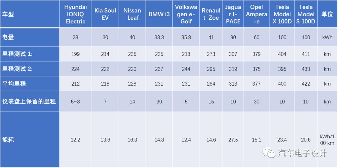 前阵子欧洲这里,也做了一些第三方的实验,coches.net和AUTOBEST做路测,拿的都是一些国外的车包括LEAF、ZOE、IONIQ、SouL EV、I3和e-golf这样的中等里程的车型,还有欧宝Ampera-e、I-pace和ModelS/X的测试。这个里程和效率测试是在巴塞罗那的高速公路和城市交通中进行的,测试中把所有电动汽车都设置为正常模式(无节能Eco或运动Sport模式),并保持空调开启状态(温度设置为19-23ºC)。 测试过程中室外的环境温度在26-33摄氏度,为了安全地测试这些电动汽车在电池较低电量警告出现意外,车辆的最后一段空电池状态,是在巴塞罗那-加泰罗尼亚赛道的赛车赛道进行的。