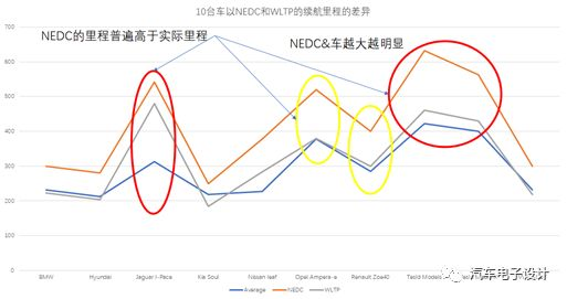 用NEDC所得出的纯电动续航里程,和实际续航的偏差较大,在几个NEDC里程较高的车辆里面特别明显