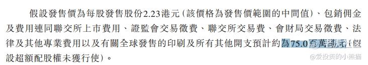 然后这个票招股书上按发售价范围的中位数2.23港元计算,公开的上市所有开支总额约为7500万港元,募资额约7.43亿港元,占比约10.09%,开支相比募资额算是比较少。