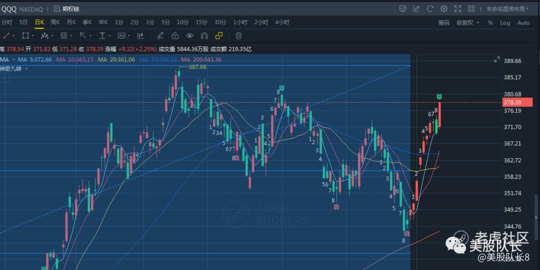 上周五纳指继续大涨,目前纳指已经涨到九转的9.这周纳指可能面临小的盘整,但大方向还是继续上涨。 $纳斯达克(.IXIC)$