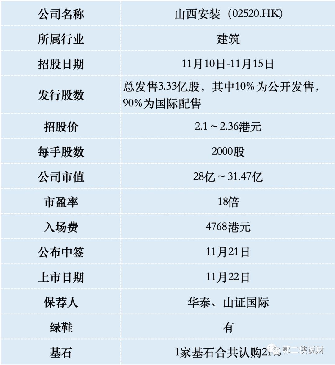 山西安装此次IPO按照发行价中位数2.23港元算,募资7.43亿,基石锁定1.57亿,流通盘5.86亿,市值不大募资额还不小,山西国资是大股东,也没有动力去做股价。