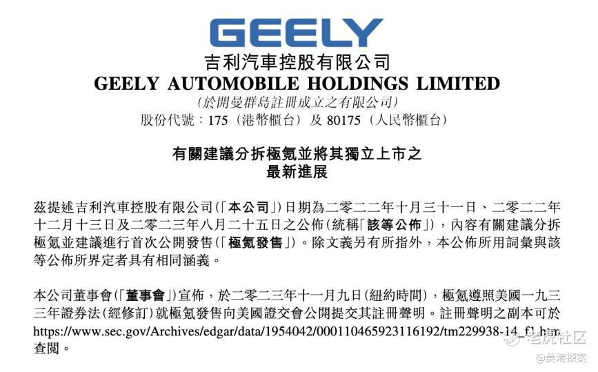 今年8月25日,中国证监会国际部已披露了关于极氪境外发行上市备案通知书。
